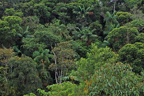 Typische Struktur eines submontanen Regenwaldes im südlichen Teil der brasilianischen Mata Atlântica mit einer hohen Dichte an E. edulis