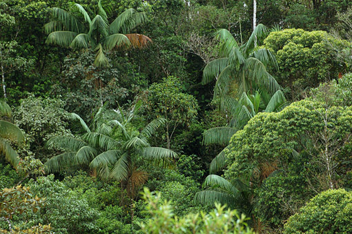 Die Dichte einzelner Individuen von E. edulis innerhalb einer Pflanzengemeinschaft kann stark variieren, da der Prozess der Samenausbreitung einerseits die Samen nahe der Mutterpflanzen konzentriert, zum anderen aber für eine geringe Samenanzahl auch im gesamten Bereich ihres Vorkommens sorgt (REIS & KAGEYAMA 2000). Laut Studien in zwei Galeriewäldern Südbrasiliens handelt es sich bei E. edulis um eine Art, die bei 126 bzw. 150 untersuchten Arten Platz 52 und 79 einnimmt (SAMPAIO et al. 2000). Phytosoziologische Untersuchungen in dichten feucht tropischen Wäldern in Santa Catarina ergaben eine höhere Dichte von E. edulis (REIS & KAGEYAMA 2000). Eigene Studien im gleichen Vegetationstyp zeigen, dass die Pflanze in den jungen Waldstadien (3-15 Jahre), die eine dichte Vegetation aufweisen, nicht vorkommt, während in älteren Stadien (> 35 Jahre) ein Durchschnitt von insgesamt 190 bis 490 Pflanzen registriert wurde, von denen 15-19% (fortgeschrittenes Waldstadium 35-50 Jahre) bzw. 32-41% (altes Waldstadium > 80 Jahre) adulte Pflanzen waren.